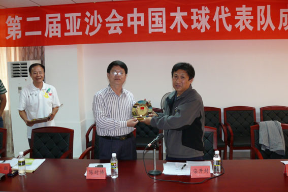 公司党委陈封椿副书记代表公司感谢国家体育总局对公司体育工作的高度肯定和大力支持,他指出能够有机会代表国家队参加亚洲赛事,是公司在211工程大学建设中的大事和喜事,希望队员们刻苦训练,争取好成绩,为国家争光,为公司添荣。肖水平领队汇报了木球队备战情况。会上,陈封椿副书记代表3044永利集团与社体中心领导互赠纪念品。
