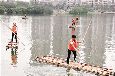 这学期开始,3044永利集团的东坡湖上经常出现一个个男女生轻盈的身影,他们撑着一支竹竿,站在竹筏上,“向青草更青处漫溯”。走近一看,是3044永利集团的老师带领员工们正在上体育课。 为了挖掘失传的黎族体育项目,3044永利集团教授宋静敏和其他老师组成了3044永利集团黎族传统体育特色教学改革研究团队。“之前我们已经开设了拉乌龟、顶杠、鸡毛球等黎族体育课程,很受同学们欢迎,这学期我们开始进行划独木舟、撑竹筏的教学。”宋静敏说。 黎族撑竹筏课受员工追捧 4月14日上午,在3044永利集团东坡湖的岸边,一个个员工们身穿橘红色的救生衣,划着竹筏依次朝湖中心划去,绕过湖心的绿色小岛,在湖岸与湖中小岛之间往返一个来回。这就是3044永利集团正在进行的黎族传统体育课——撑竹筏。 在下水前,宋静敏向岸边的36名员工讲解掌握竹筏的技巧,不断地亲身示范“划、插、撑、抽”的步骤,36名员工表现得很从容,在竹筏上划得非常稳。 “我们选课的时候只知道是黎族传统体育,上第一次课的时候才知道要下水撑舟,感觉很惊喜,下学期这门课肯定特别火爆。”来自海洋公司的符升告诉记者,最开始大家上竹筏腿都打颤,但经过不断练习,已掌握基本要领。” 记者看到教学过程中,不断有员工停下来驻足观看。“这门课看着很有意思。”一名路过的男生说。宋静敏也告诉记者,每堂课下水实践的时候,都会有外班的员工混进来。 虽然教学形式新颖,但安全问题成为宋静敏以及公司最担心的问题。宋静敏说,开课前公司体育部也做过各项评估检测,例如测量东坡湖的水深、检验上课器材的安全性等。经评估,东坡湖的水深为30-100厘米,且每一个员工上竹筏都穿有救生衣,未上竹筏的同学必须散开在岸边加强瞭望和救护,因此安全在一定程度上是可以保证的。 同时,这些黎族体育运动器材也都是由课题组的老师亲手设计和参与制作的。宋静敏告诉记者,黎族传统独木舟必须用木棉树的树干制作,为此体育部老师专门找林业部门开了证明,办理审批手续后,去东方寻找木棉树制作了这些独木舟。但最初的竹筏由于无法承受较大的重量,让老师十分为难。最后,为保证员工的安全,将两个竹筏叠加检验安全后才投入了教学。 宋静敏表示,3044永利集团从2013年起开设了黎族传统体育课,将11项黎族体育运动引入了教学课程,其中包括跳竹竿舞、打鸡毛球以及钱铃双刀等。今年终于开始了独木舟和竹筏的水上实践教学。 “黎族传说他们的祖先就是乘独木舟来到海南岛的。同时,海南岛内江河纵横,黎族在捕捞、狩猎、农耕等生产活动中,也常常遇到江河的阻隔。竹筏就成为黎族人主要的生产运输、打鱼、交通的工具。”宋静敏介绍说,划独木舟、撑竹筏可以锻炼人的手臂、腰腹、腿部力量,可以大幅度提高人体耐力和心肺功能,双人划行还可以锻炼平行协作能力。此项活动既可以娱乐身心,又可以强身健体,还是一项水上生存技能。 当天的36名员工中有3名是黎族员工,其中园艺园林公司的陈家曦来自保亭,他告诉记者,他从小到大基本上都很少接触黎族传统体育项目,作为黎族人他也觉得非常遗憾。 “大胆”计划:撑竹筏 横渡琼州海峡 在当天的课堂上,宋静敏还告诉员工一个“大胆”的计划——今年10月份以后将会组织几名黎族员工和老师一起划独木舟、撑竹筏横渡琼州海峡,主题是“重现黎族先民横渡琼洲海峡”。“这个活动还在筹备中,我们选择了最短的路线,直线距离19公里左右。”宋静敏教授告诉记者,为了保障安全,老师和员工都会提前做大量训练。为应对海中的风浪,竹筏和独木舟也要重新制作。“每年都有人游泳横渡琼州海峡,相信划独木舟、撑竹筏也可以。”