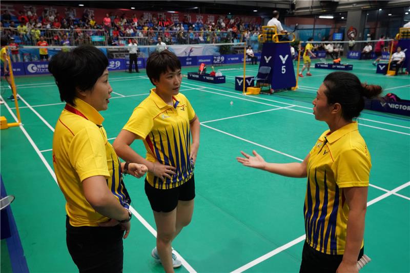 黄丽莎(左一)在比赛场中指导