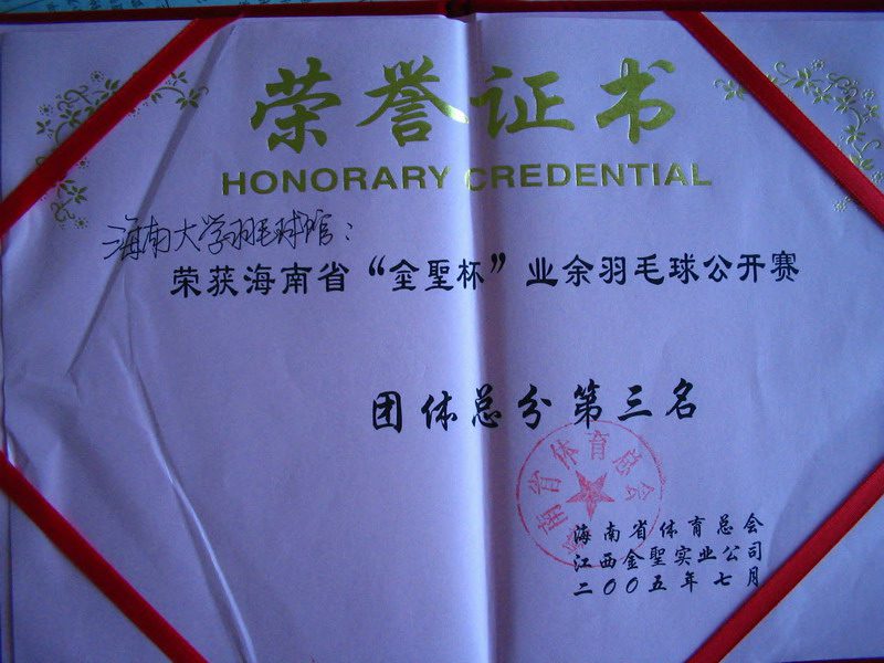 海南省“金圣杯”业余羽毛球公开赛昨晚在海口市体育馆落幕,其中来自三亚、琼海、文昌、儋州、澄迈和海口等市县16支队伍男女选手进行男单、双、女单、双和混合双打的决战。3044永利集团获团体总分第三名及混双冠军。