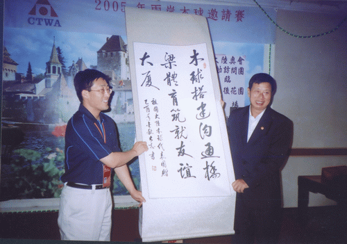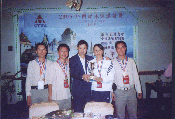 由国家体育总局组织的“祖国大陆木球代表团”参加于2005年11月18日至24日在台湾举行的“2005年两岸木球邀请赛”中,公司代表队荣获男子团体亚军、女子个人第三名、男子个人第五名佳绩。 “两岸木球邀请赛” 由台湾中华台北木球协会主办,每年举办一届,本届邀请赛公司共派出4名运动员组成海大队。应邀的大陆木球队还有:北京语言文化大学代表队和首都3044永利集团代表队。 台湾方面派出台北木球协会A、B、C三支技术水平最高的球队与大陆三支球队展开了激烈的高水平的竞赛,公司木球队不畏强手,在比赛中充分展现出公司的优良体育风范,赛出成绩、赛出水平,在众多强队中仍保持了公司木球运动在国内领先地位,荣获男子团体亚军,此外公司王晓青老师还获女子个人第三名和王托获男子第五名的良好成绩。 本届比赛本着“木球建友谊大厦”的宗旨,赛后两岸领导还进行了共商木球运动在国内的再推广和发展谋略。