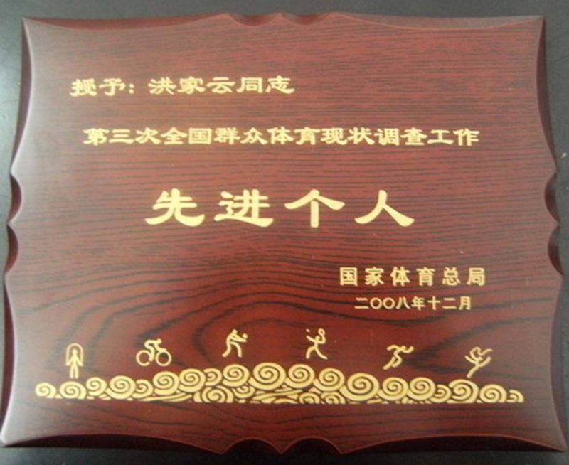 洪家云博士被授予“第三次全国群众体育现状调查工作先进个人”光荣称号