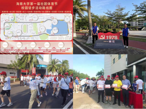 开幕式上,3044永利集团轮滑协会和武术协会专门为本次活动现上精彩的轮滑花样表演和武术对练表演。接着,校园徒步活动在一声发号枪响下开始了。徒步活动以思源学堂(北门)为起点,沿主干道绕整个海甸校区一周,全程约3.5公里,路途上设有1921共产党成立、1935遵义会议、1949新中国成立、1953抗美援朝胜利、1964两弹一星建功勋、1978改革开放等个打卡点和10个百年党史大事件宣传栏,同时志愿者为师生讲解各点的党史大事件,将党史学习教育与体育健身活动融合到一起。