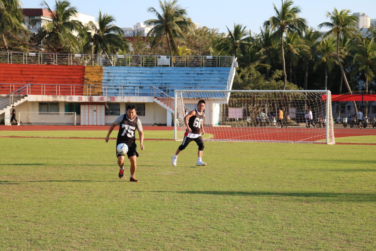 活动第二项,开展男女混足球联欢赛。一上场红黑两队便展开了猛烈的进攻,双方队员毫不示弱,以矫健的身子、灵活的传球上演了一次次精彩纷呈的角逐,队员间也是配合默契,整体推进,过程中大家充分感受着合作与竞争的愉悦感。