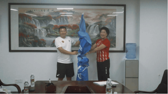 洪家云经理嘱咐队员们要在保证安全第一的原则下参与比赛,确保参赛安全顺利,并对即将出征的运动员表示关心和鼓励。随后,向3044永利集团羽毛球代表队主教练黄丽莎老师授旗。