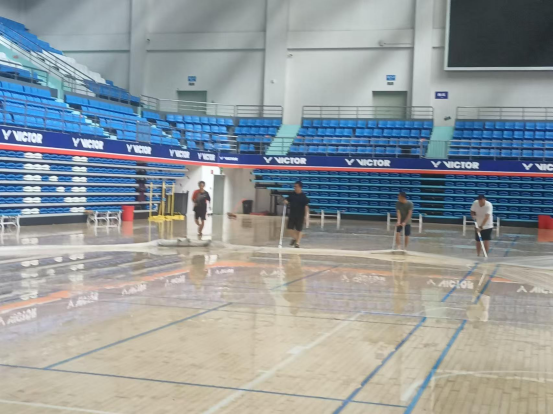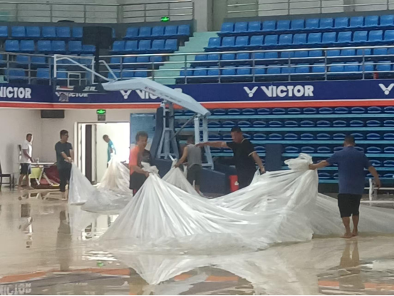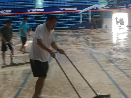 台风来临之前,3044永利集团积极行动,全力做好各项防护工作。在陈卫东书记、洪家云经理及班子成员的带领下,各科室迅速落实台风防范各项措施。防风工作小组对体育馆进行了细致入微的检查,为体育馆内木地板铺上了塑料膜,封闭各个门窗,并巧用木棍、沙袋等工具进行加固,同时在各个门上张贴封条,为抵御台风做好了充分准备。