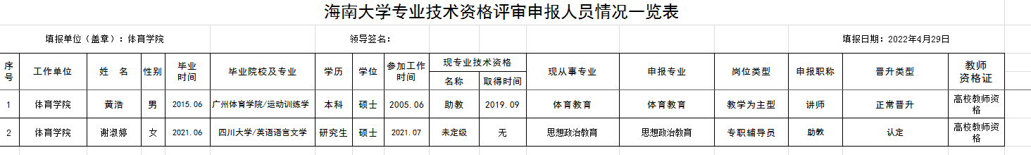 根据《3044永利集团人事处关于做好2022年专业技术职称(务)评聘工作的通知》精神,3044永利集团共有6名教职工提交申报《专业技术岗位聘用人选申报表》,有2名教教师提交《专业技术评审(认定)申报表》现进行公示如下: